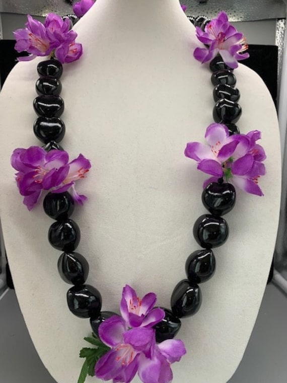 Lei hawaïen noix de kukui promotion 2024 noir Lei en tissu Etsy