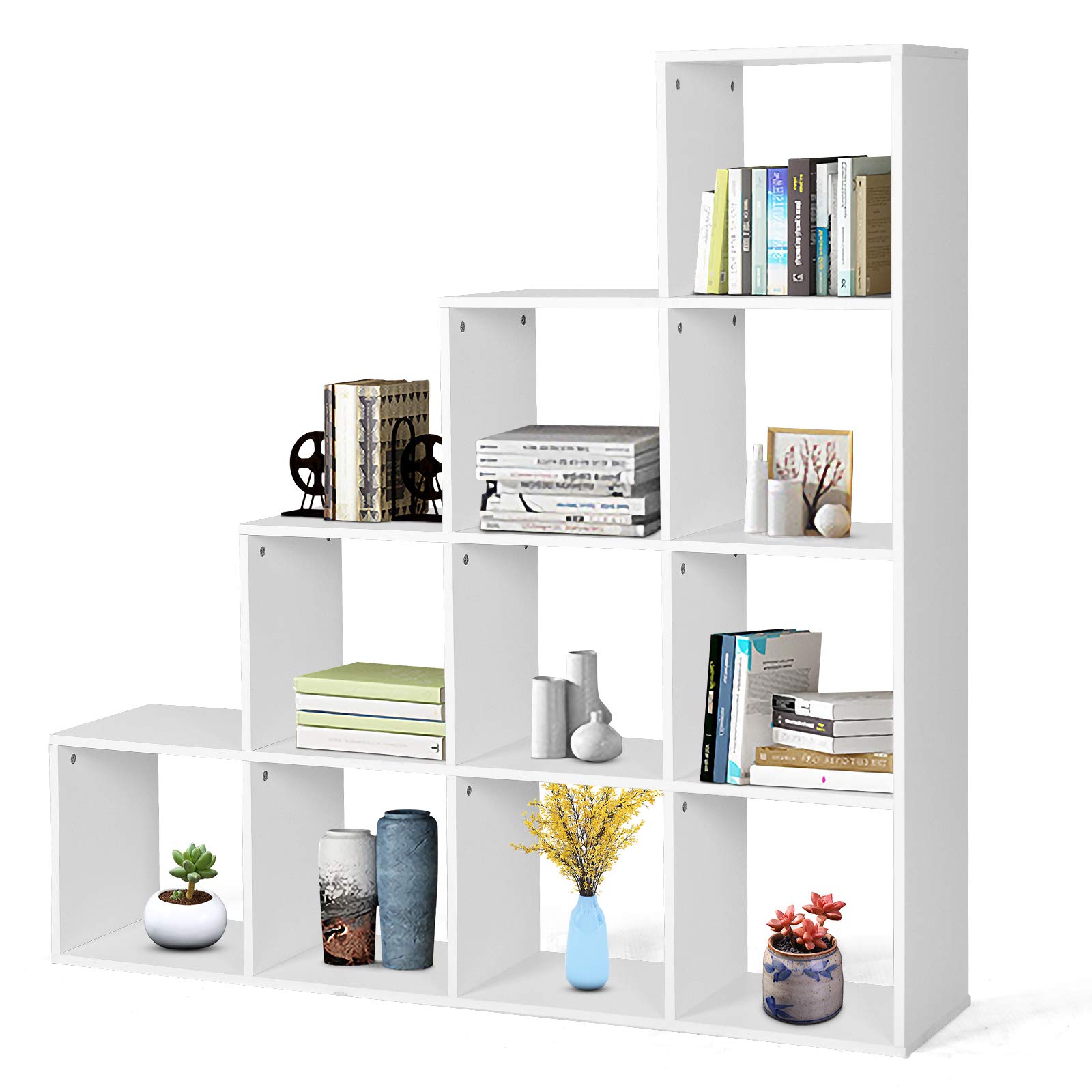 GOPLUS Stair Shelf, Bookcase, Room Divider, Standing Shelf, Wooden