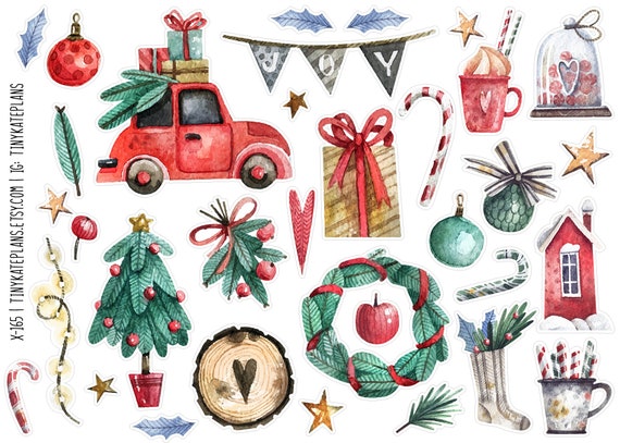Watercolor Christmas Planner Stickers Xmas Truck Christmas Etsy